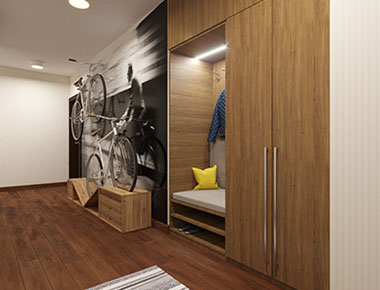 Самой сложной задачей было придумать, куда и как уместить 2 велосипеда так, чтобы они не мешали проходу и чтобы хватило места для хранения инструментов для их обслуживания.