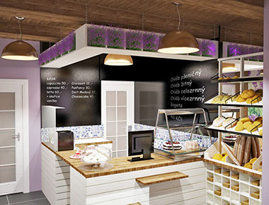 Jeden z projektů našého týmu. Design této kavárny byl zpracován pro malou rodinnou pekárnu, расположившуюся на окраине Праги.