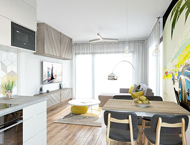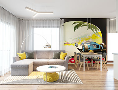 Дизайн проект этой двухкомнатной квартиры входит в число одного из самых любимых проектов нашей студии. Концепция данного интерьера была реализована для молодого парня, любящего яркие и светлые оттенки, а также лаконичные и современные решения в современных пространствах.