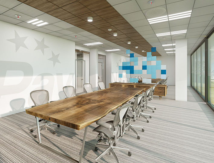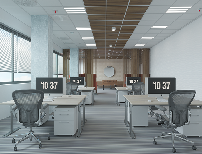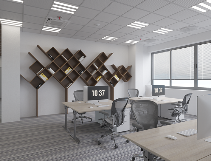Проект офиса компании ePayService разрабатывался под помещение величиной 300 м2, находящееся в одном из бизнес-центров Праги. Нашими главными задачами было прежде всего создать комфортную схему посадки сотрудников компании, а также придумать уникальный и современный дизайн офиса.