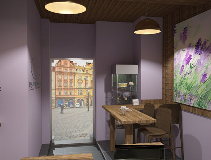Jeden z projektů našého týmu. Design této kavárny byl zpracován pro malou rodinnou pekárnu, расположившуюся на окраине Праги.