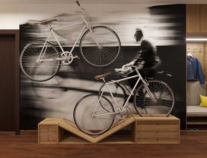 Самой сложной задачей было придумать, куда и как уместить 2 велосипеда так, чтобы они не мешали проходу и чтобы хватило места для хранения инструментов для их обслуживания.