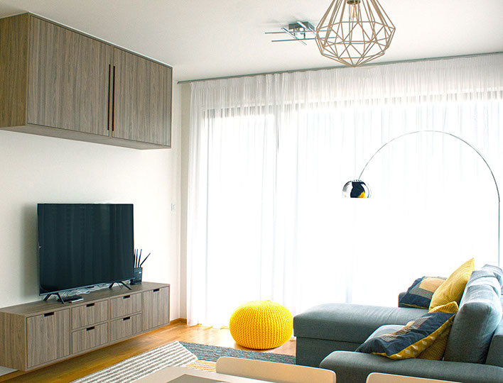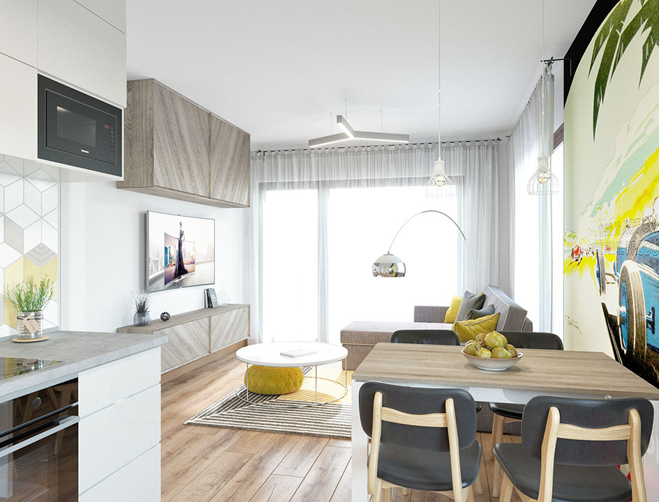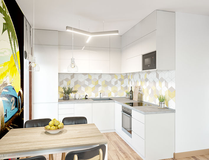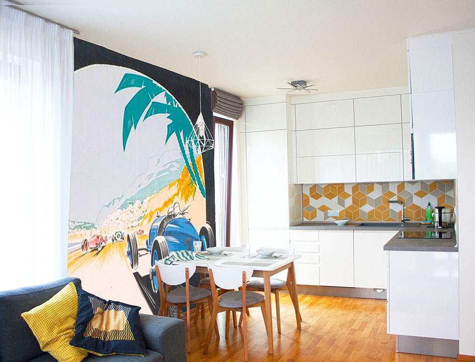 Дизайн проект этой двухкомнатной квартиры входит в число одного из самых любимых проектов нашей студии. Концепция данного интерьера была реализована для молодого парня, любящего яркие и светлые оттенки, а также лаконичные и современные решения в современных пространствах.