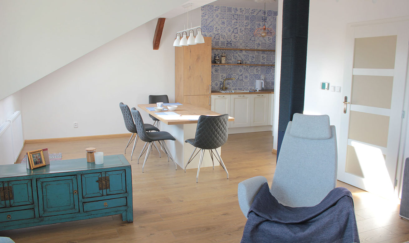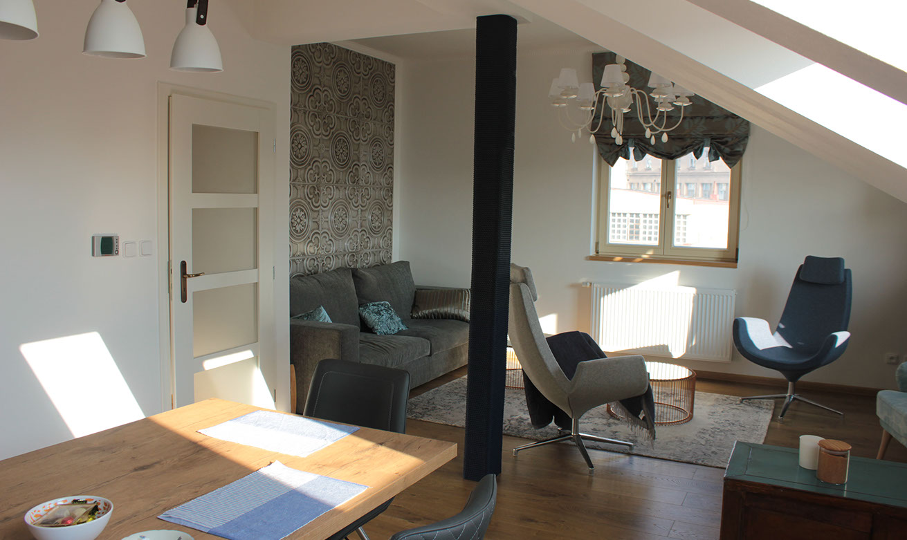 Дизайн данной квартиры разрабатывался с расчетом на молодую девушку, приезжающую в Прагу на учебу.