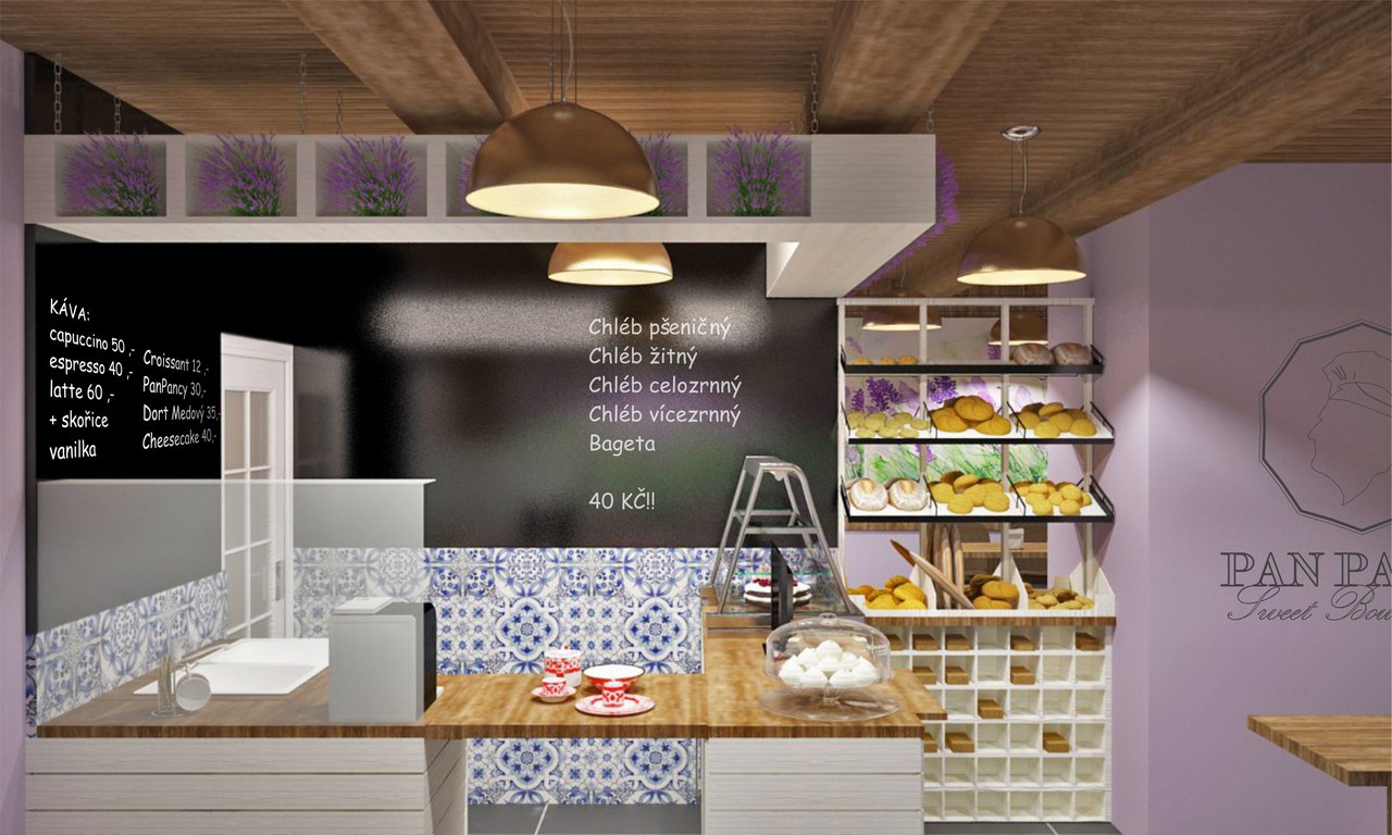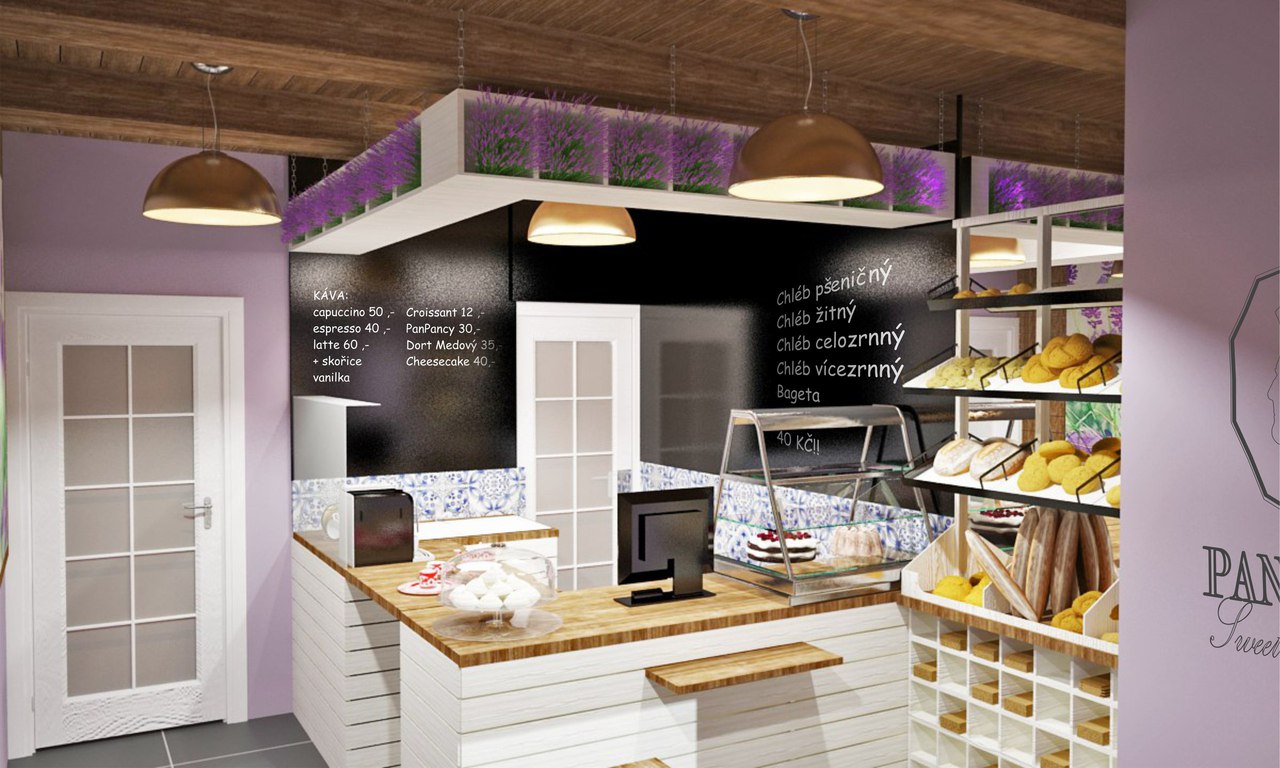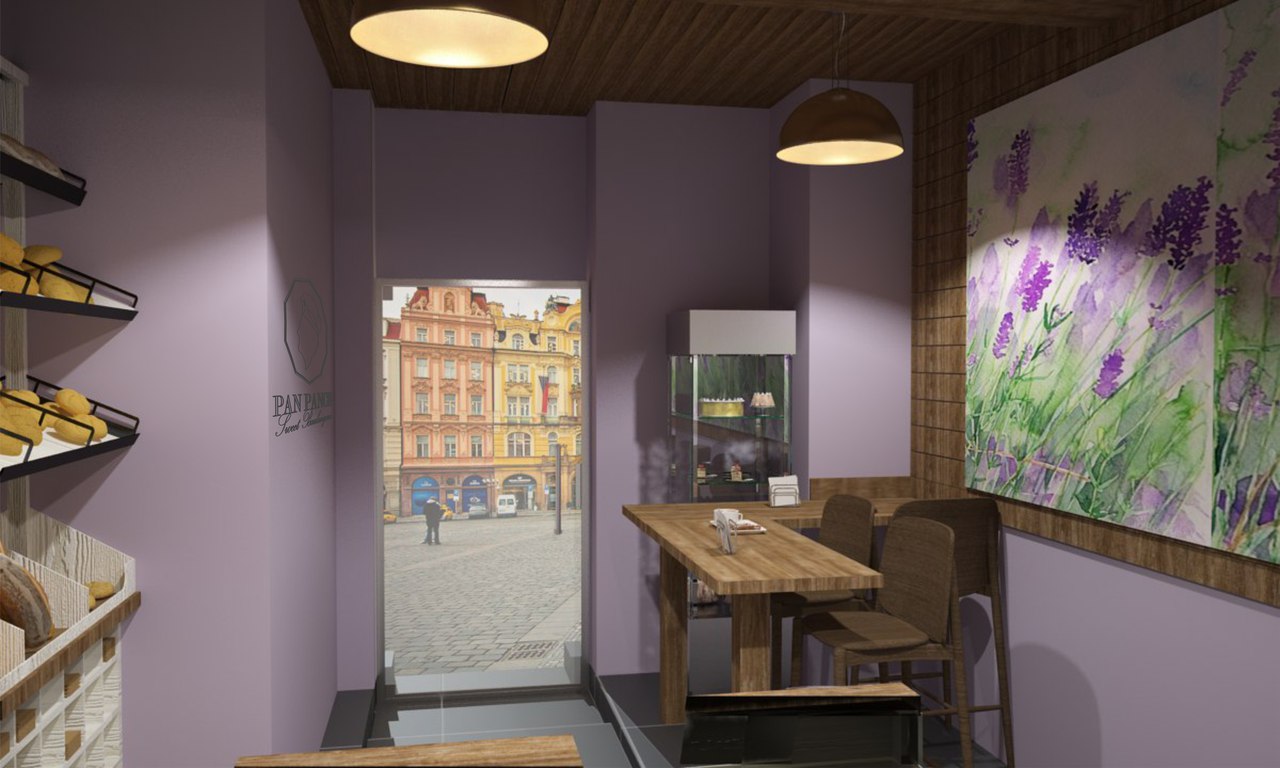Jeden z projektů našého týmu. Design této kavárny byl zpracován pro malou rodinnou pekárnu, расположившуюся на окраине Праги.