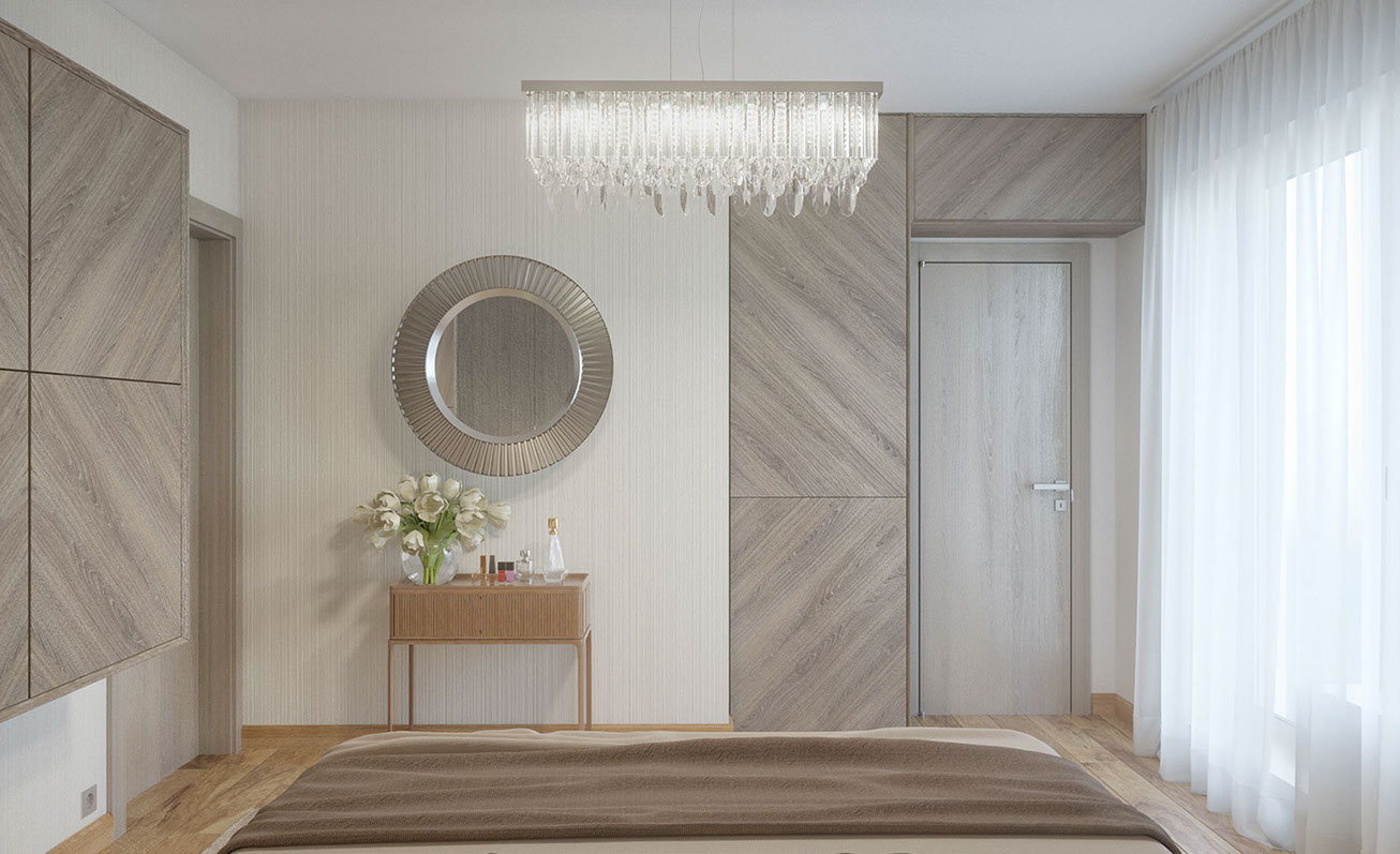 Этот проект был создан для семьи с двумя детьми, предпочитающей современные и лаконичные интерьеры. Одним из основных требований было отсутствие открытых полок и наличие достаточного колличества мест для хранения.